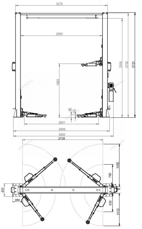 Электрогидравлический двухстоечный подъемник г/п 4 т. NORDBERG N4122HM-4B