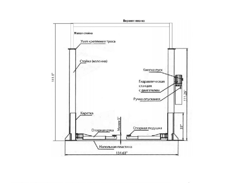 Электрогидравлический двухстоечный подъемник г/п 4000 кг. AE&T S4B-2 (220 В) характеристики