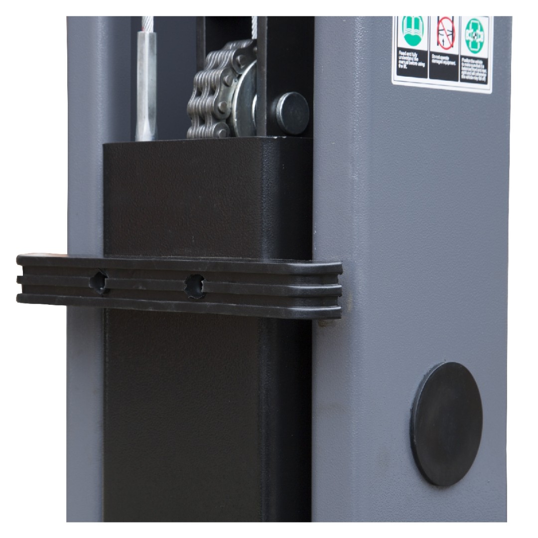 Двухстоечный электрогидравлический подъемник с нижней синхронизацией KRAFTWELL KRW4DLM грузоподъемностью 4000 кг предназначен для подъема легковых автомобилей, внедорожников и легкого коммерческого транспорта с короткой колесной базой. За подъем автомобиля отвечают два гидравлических цилиндра с цепным приводом каретки. Такой тип привода уменьшает нагрузку на гидроцилиндры и обеспечивает долговечность их работы. Внутри колонн расположены каретки с поворотными лапами асимметричной конструкции, применяемые на подъемниках для американского рынка. Каретки снабжены нейлоновыми ползунами, обеспечивающими плавное перемещение внутри стоек. Простая и, в тоже время, надежная система механических стопоров со снятием с двух сторон обеспечивает безопасное удержание автомобиля в поднятом состоянии на протяжении всего времени ремонта. Габаритная высота подъемника составляет 2814 мм и позволяет устанавливать его в помещениях с высотой потолка от 3 метров и выше.