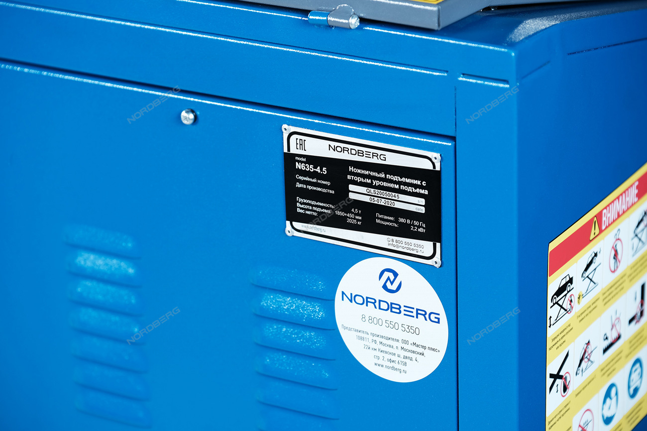 Ножничный подъемник NORDBERG N635-4,5 – безопасное и надежное оборудование для проведения различных видов работ по обслуживанию и ремонту автотранспорта в автосервисах и СТО.