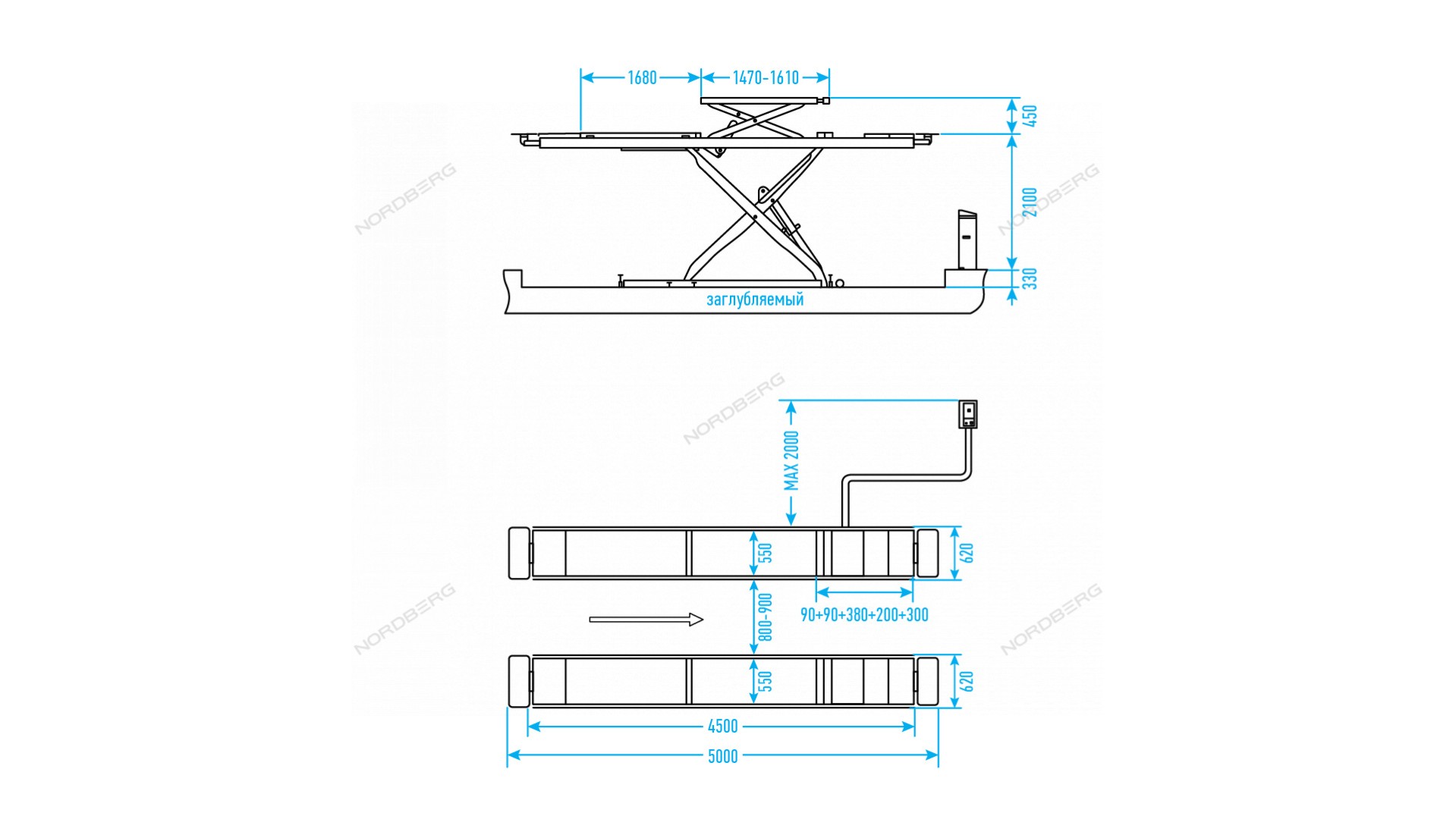 Подъемник ножничный для сход-развала NORDBERG N635-4,5B_380_H – профессиональное оборудование для обслуживания легкового и грузового транспорта в автосервисных мастерских и СТО.