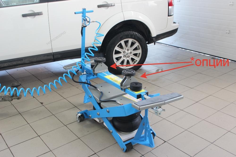 - Возможность подхвата автомобиля как за пороги, так и за несущую раму с использованием специальных адаптеров.