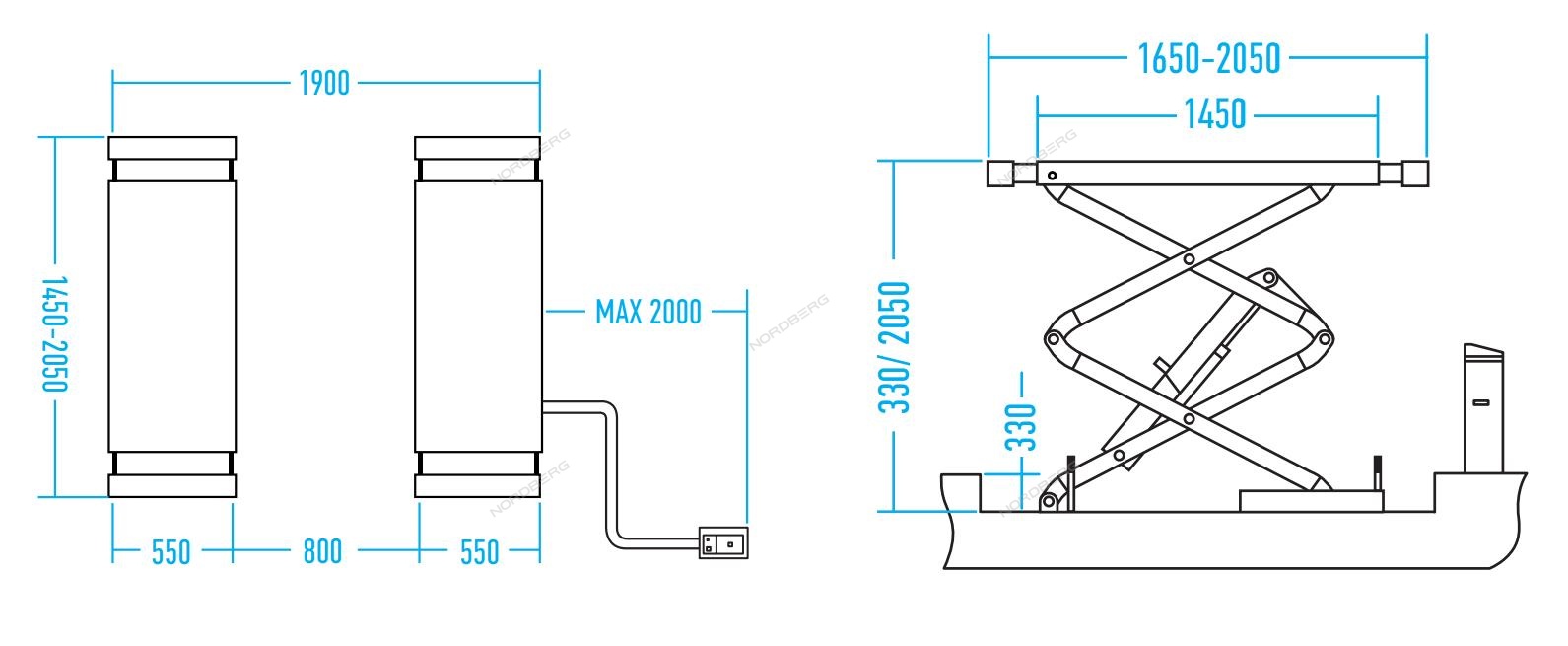 Ножничный подъемник для сх-разв 4,5т, 380В, 2 уровня NORDBERG N635-4,5G_380