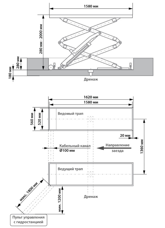 Ножничный подъемник для регулировки развал/схождения Sivik ПГН-8350 с люфт-детектором