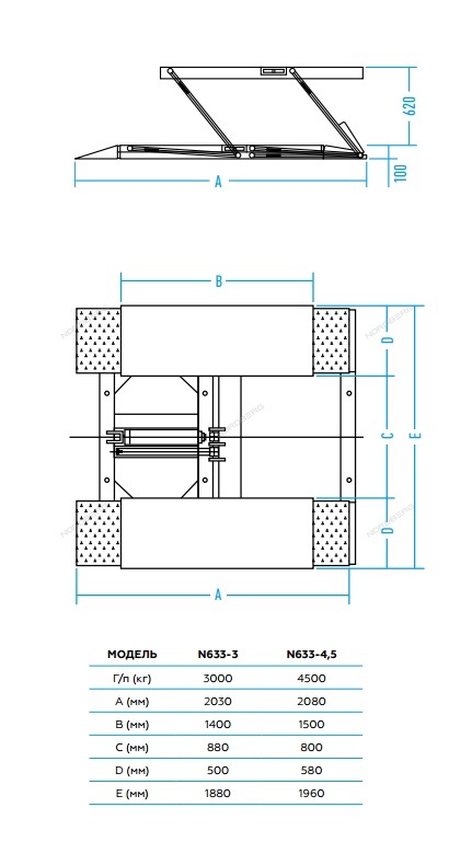 Ножничный подъемник г/п 3 т. NORDBERG N633-3B_220 характеристики