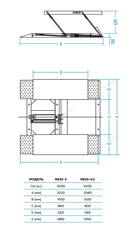 Ножничный подъемник г/п 4,5 т. NORDBERG N633-4,5B_380 характеристики