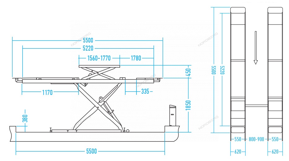 Подъемник ножничный для сх-разв 5,5т, 380В, 2 уровня, синий NORDBERG N635-5,5B