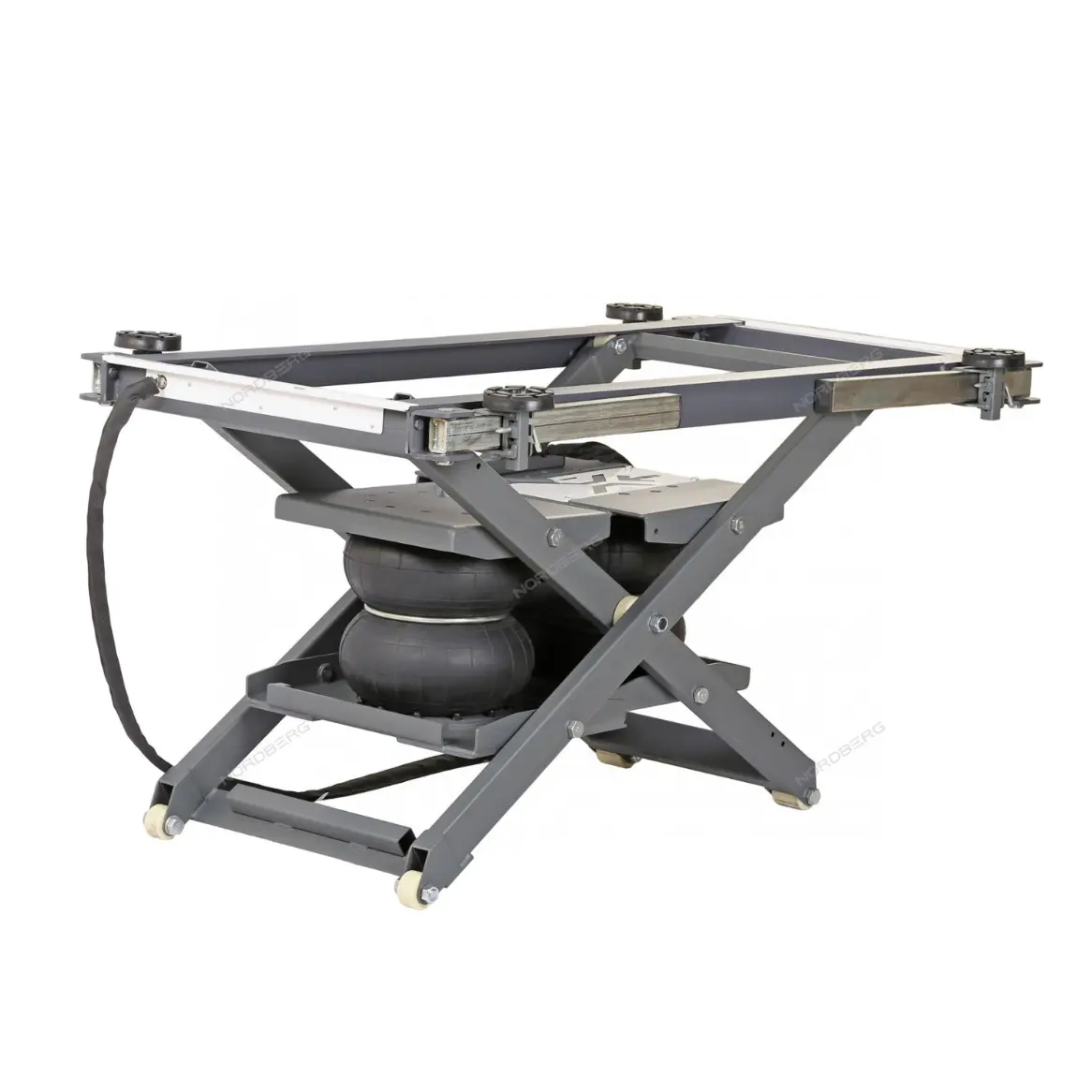 Ножничный мобильный подъемник NORDBERG N636-3 – компактное и удобное подъемное оборудование для подъема автомобилей до 2 тонн, предназначенное для профессионального и бытового использования в автосервисах, студиях детейлинга, шиномонтажных мастерских, гаражах и на автосервисных предприятиях.