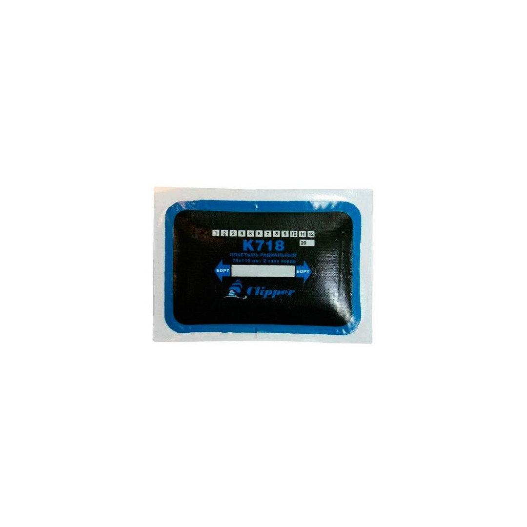 Пластыри радиальные кордовые Clipper K718 размером 75 х 110 мм с двумя слоями корда серии «К700» - это линейка усиленных армированных пластырей, изготовленных для проведения ремонта радиальных шин.