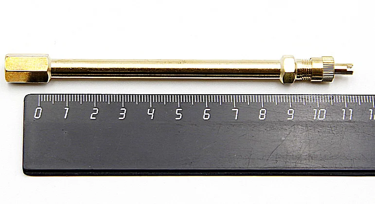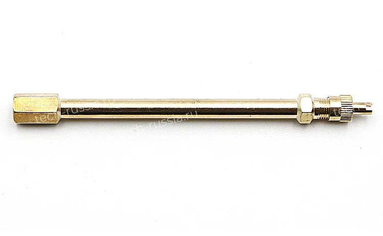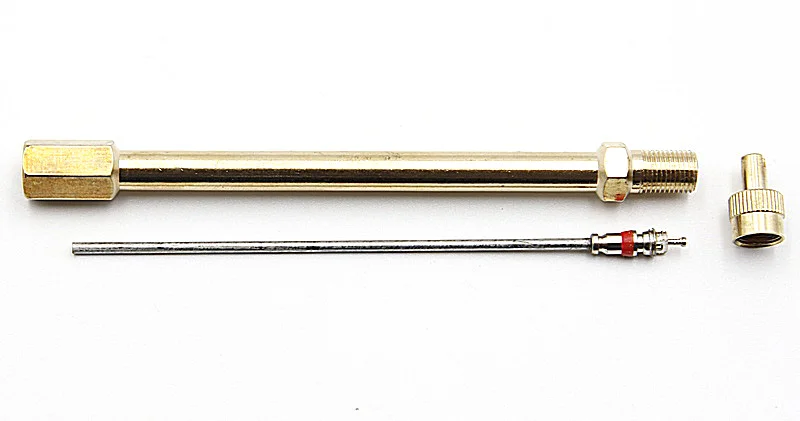 Удлинитель состоит из латунного корпуса, колпачка со шлицем под отвёртку и высокотемпературного золотника с длинным штоком, который нажимает при подкачке колеса на золотник вентиля.