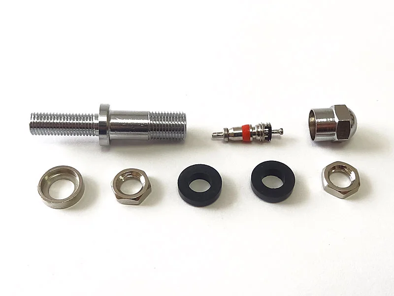 Металлический хромированный вентиль арт. VS-6 для легковых кованных и литых дисков c диаметром отверстия в диске 6 мм. Используется для накачки (подкачки) и измерения давления в шине. Вентиль состоит из металлического корпуса, двух гаек, шайбы, двух резиновых уплотнительных колец, защитного колпачка и золотника.