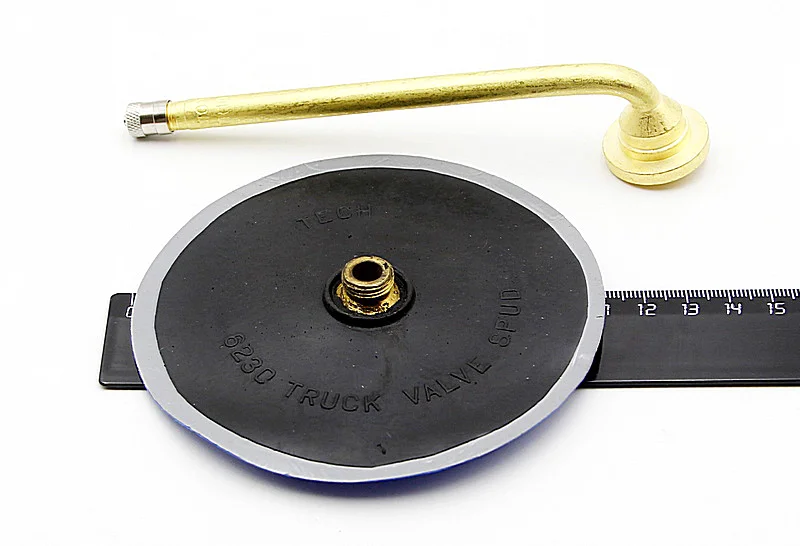Вентиль с резиновой подложкой арт. GK-137 устанавливается методом холодной вулканизации в новом, неповреждённом месте на грузовой камере, которое должно быть примерно на расстоянии ¼ длины окружности камеры от старого повреждённого вентиля с подложкой.