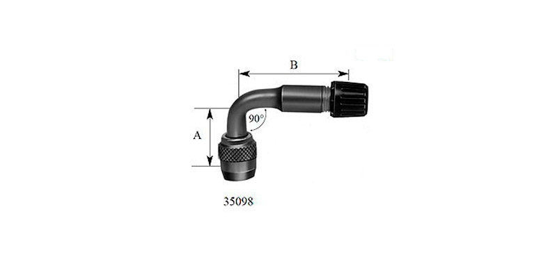 Металлический вентильный удлинитель изогнутый, изгиб 90*