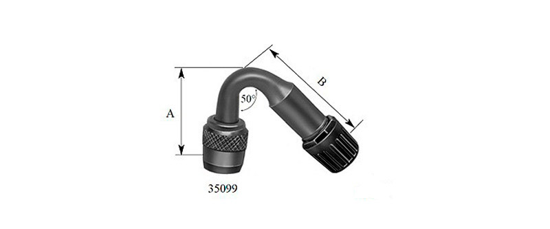 Металлический вентильный удлинитель изогнутый, изгиб 50*