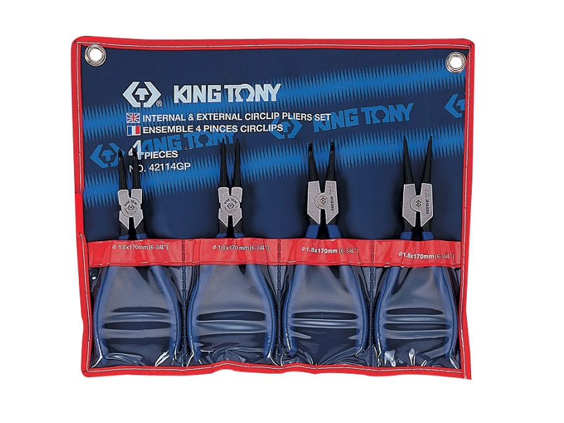 Набор съемников стопорных колец торговой марки KING TONY предназначен для работ со стопорными кольцами.Рабочие поверхности инструментов термически обработаны, что придаёт им особую прочность и стойкость к износу или сколам.