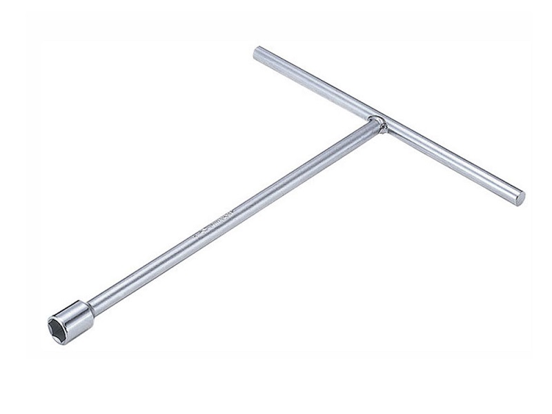 Т-образная рукоятка и удлинённая рабочая часть ключа удобны при работе с торцевым крепежом, расположенном в углублении.