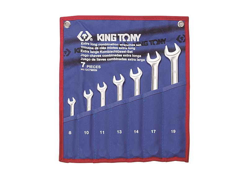 Набор комбинированных удлиненных ключей, 8-19 мм, чехол из теторона, 7 предметов KING TONY 12C7MRN
