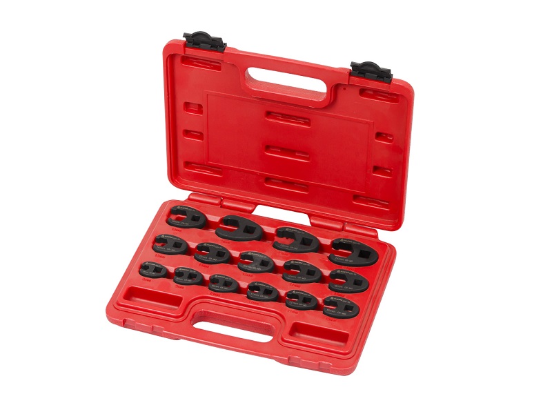 Набор включает в свой состав разрезные ключи-насадки, назначение которых – работа с крепежом, находящимся на трубках, длинных шпильках и прочим крепежом, где применение другого вида инструмента невозможно. Такой тип ключей часто называют «воронья лапка».