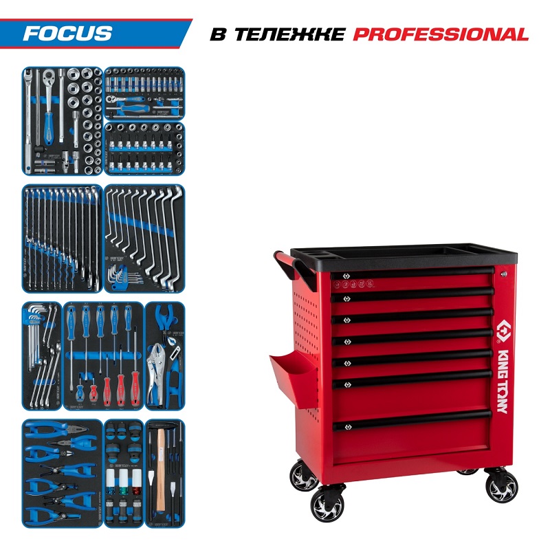 Набор инструментов 188 предметов, "focus", в красной тележке king tony 9g38-188mrvr характеристики