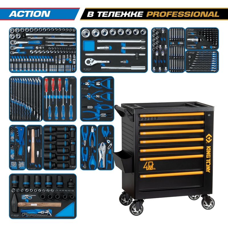 Набор инструментов 327 предметов, "action", в черной тележке king tony 9g38-327mrv40 характеристики