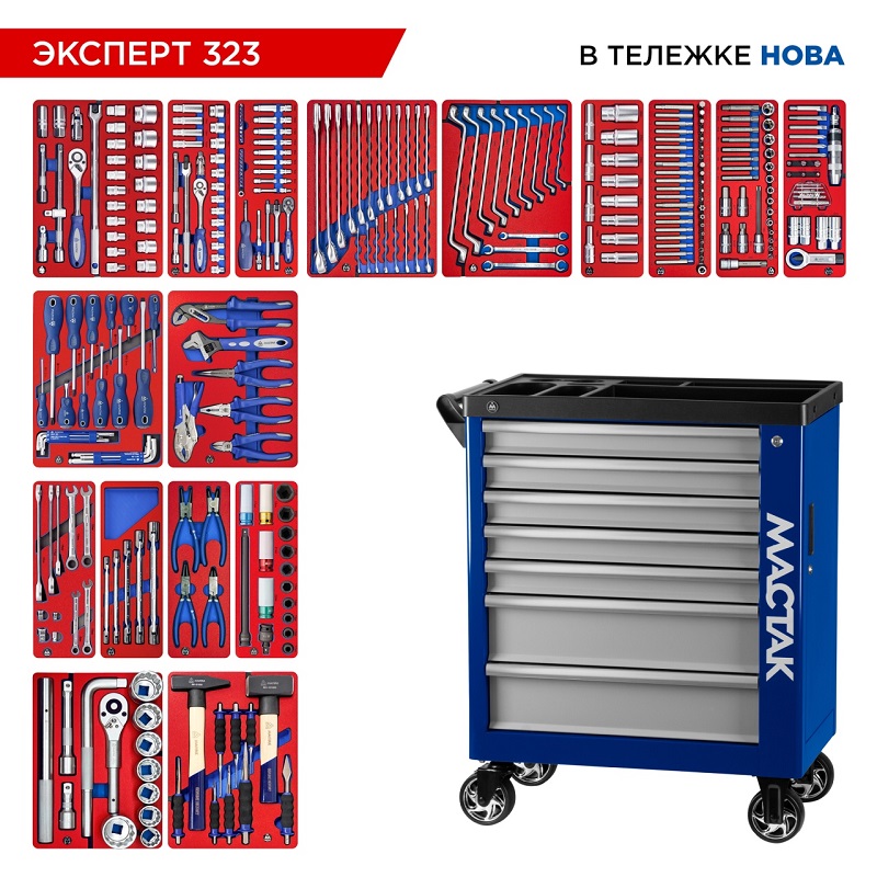 Набор инструментов 323 предмета, "эксперт 323", в синей тележке мастак 50-07323b