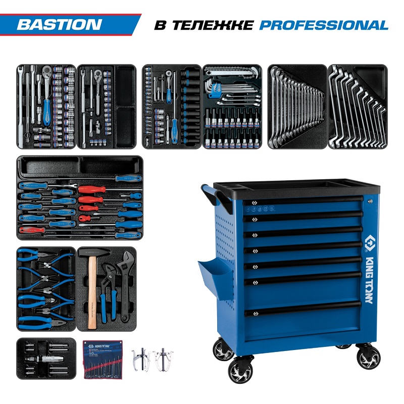 Набор инструментов 204 предмета, "bastion", в синей тележке king tony 9g38-100mrb характеристики
