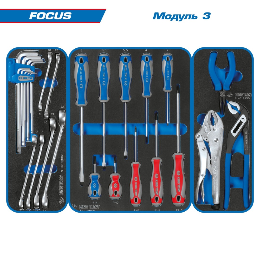 Набор инструментов 188 предметов, "focus", в черной тележке king tony 9g38-188mrv40 характеристики