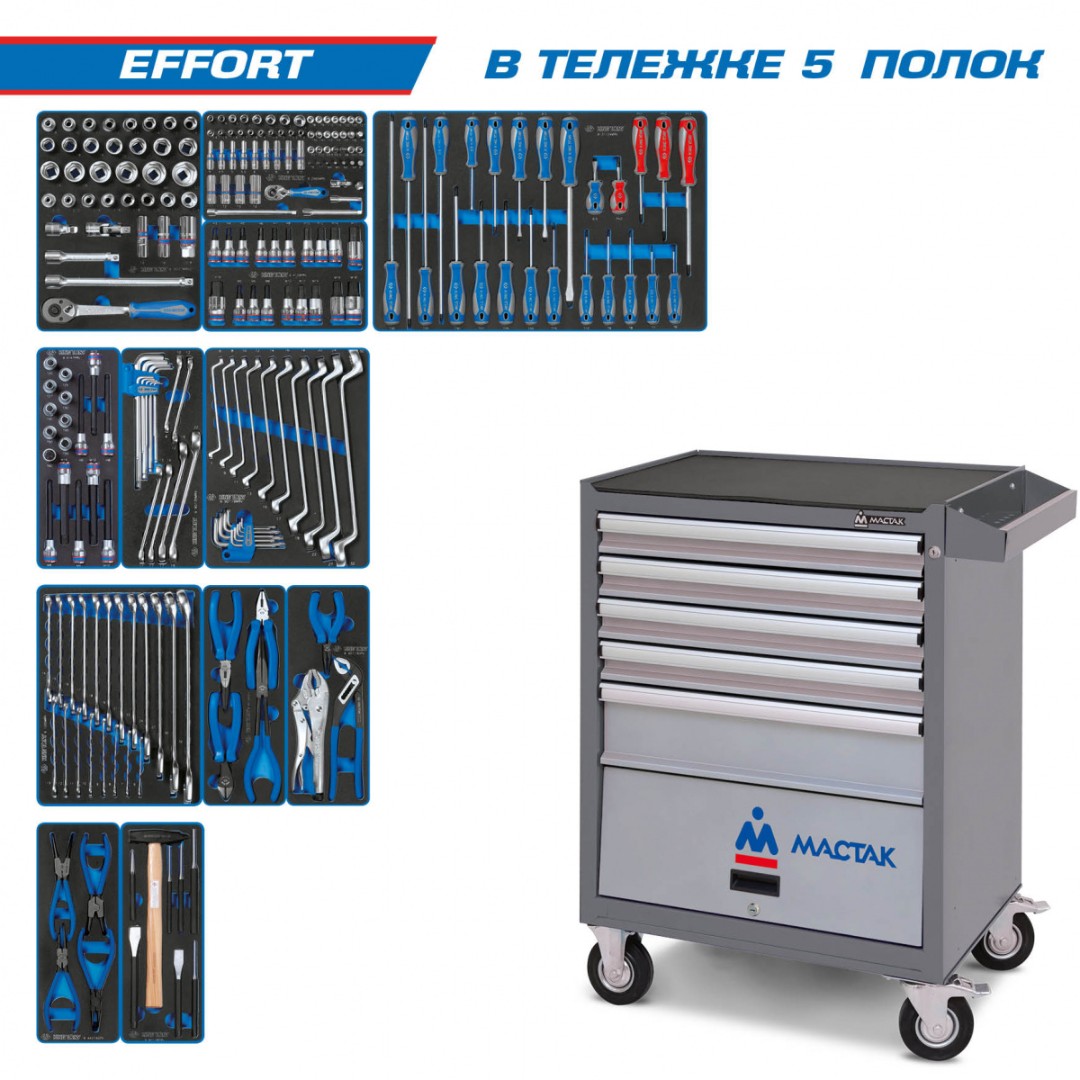 Набор инструментов 192 предмета, "стандарт 192", в серой тележке мастак 52-05192g