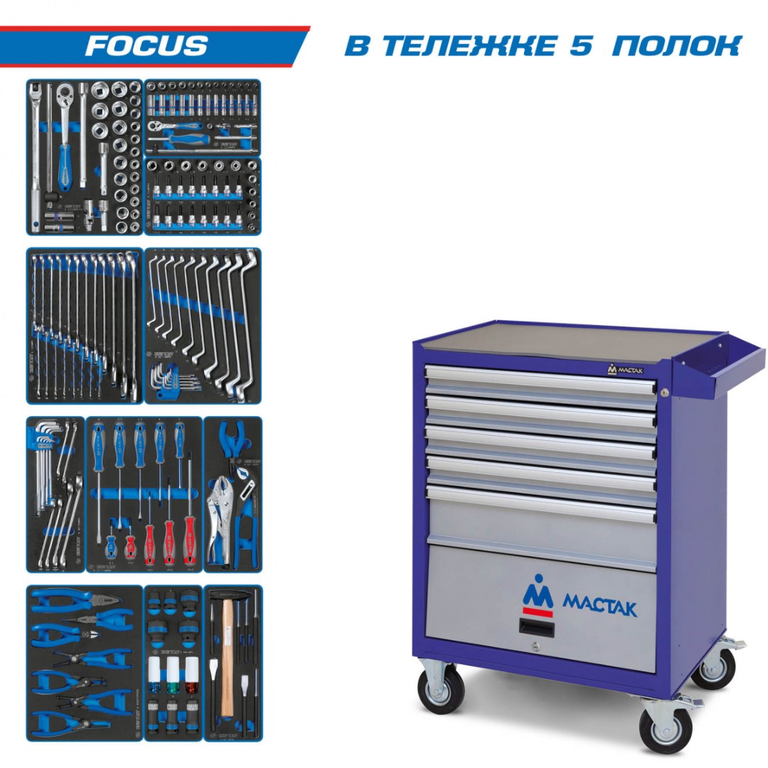 Набор инструментов 192 предмета, "стандарт 192", в серой тележке мастак 52-05192g