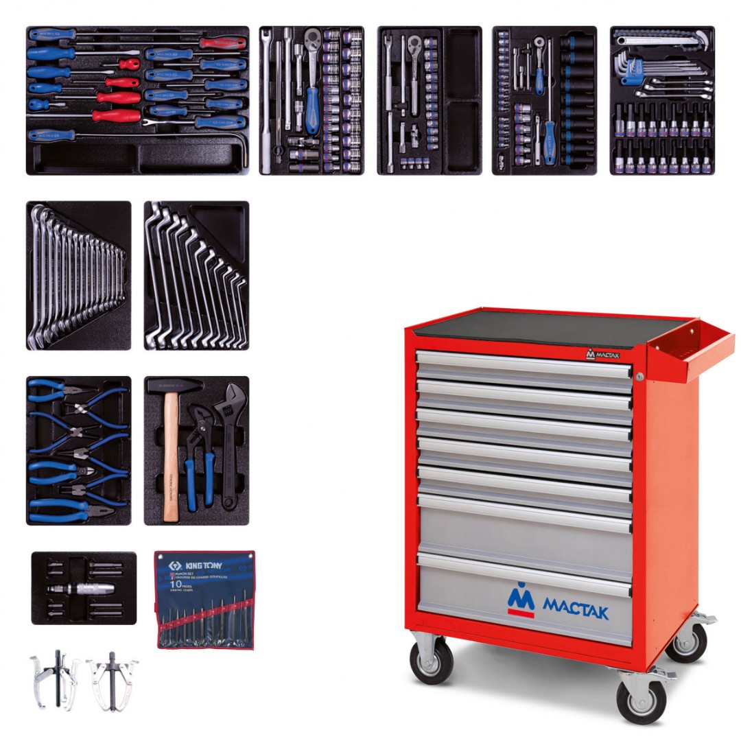 Набор инструментов в красной тележке, 204 пр. KING TONY 934-100AMR