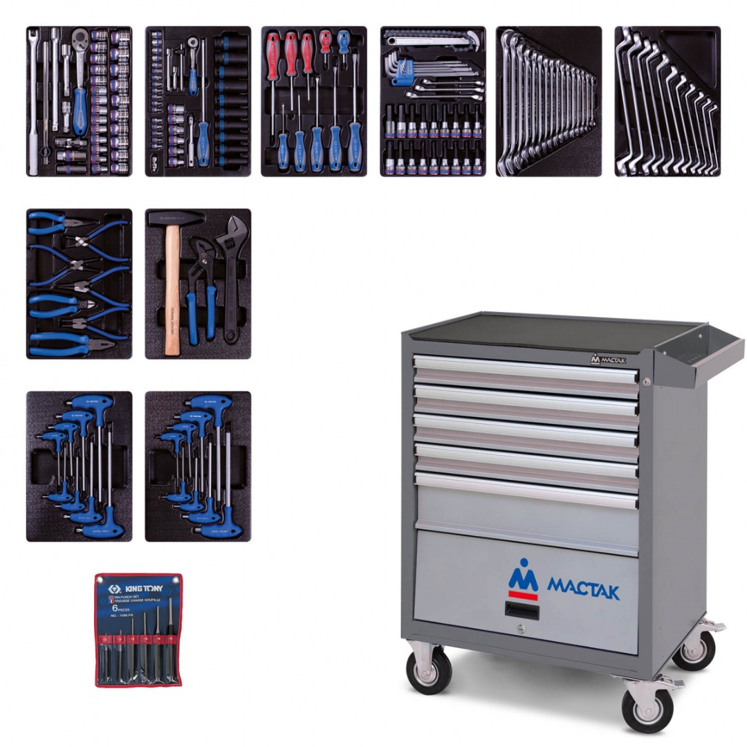KING TONY Набор инструментов в серой тележке, 173 пр. 932-000AMG