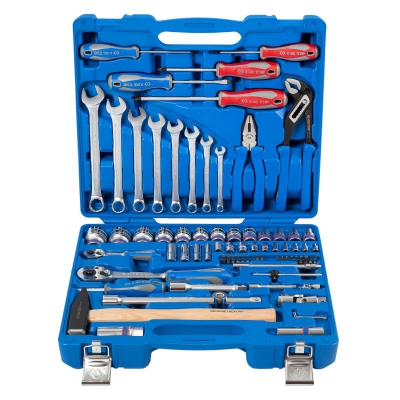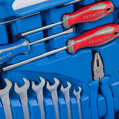 Универсальный набор ручного инструмента KING TONY 7577MR, состоящий из 77 предметов и размещенный в удобном переносном кейсе, применяется в небольших мастерских, выездными бригадами, частными мастерами при проведении ремонта автомобилей и другой техники, различных конструкций.