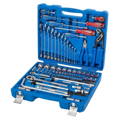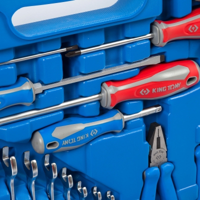 Универсальный набор ручного инструмента KING TONY 7598MR, состоящий из 97 предметов и размещенный в удобном переносном кейсе, применяется в небольших мастерских, выездными бригадами, частными мастерами при проведении ремонта автомобилей и другой техники, различных конструкций.