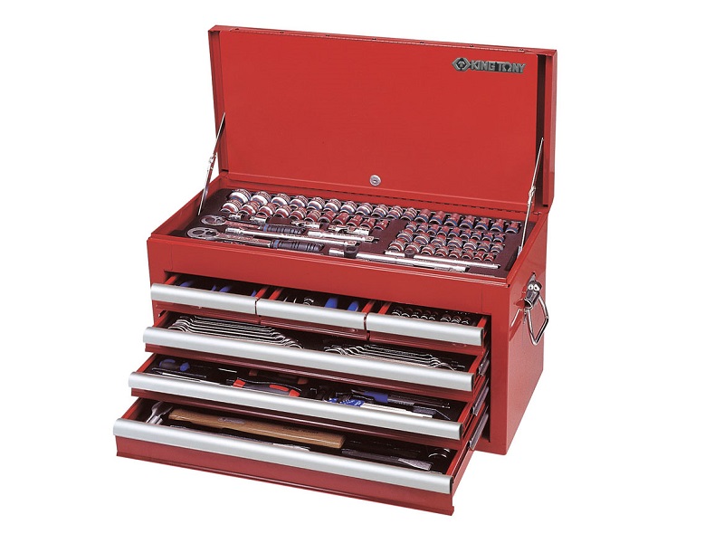 Набор инструментов марки KING TONY состоит из 219 предметов, и включает в себя ложементы, размещённые в инструментальном ящике. Каждый ложемент расположен на своей полке, что позволяет содержать инструмент в полном порядке. Комплектация набора включает в себя всё необходимое для организации рабочего места в любом производственном помещении, станции технического обслуживания или авторемонтной мастерской.
