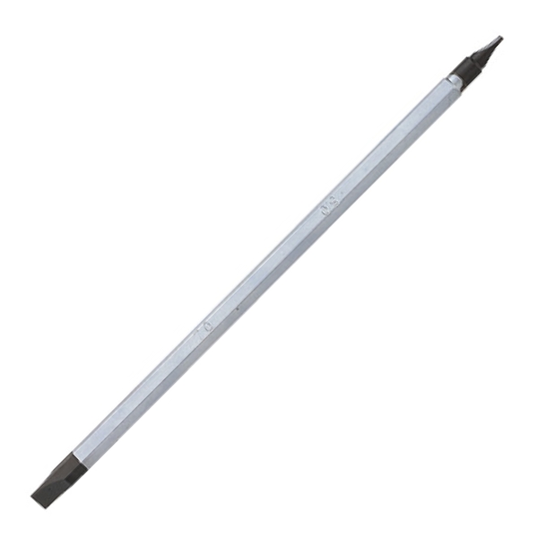Переставное жало для отвертки изготовлено из высококачественной легированной стали с добавлением молибдена (SNCM–V), отличается высокой прочностью и пригодно для тяжелых условий эксплуатации с высокими нагрузками. Инструмент с одной стороны имеет рабочий профиль Slotted (шлицевой / плоский) с размером 5.0 мм, с другой – Slotted 7.0 мм. Применение сменных вставок позволяет работать с различным крепежом, используя лишь одну отвертку-вороток (поставляется отдельно).