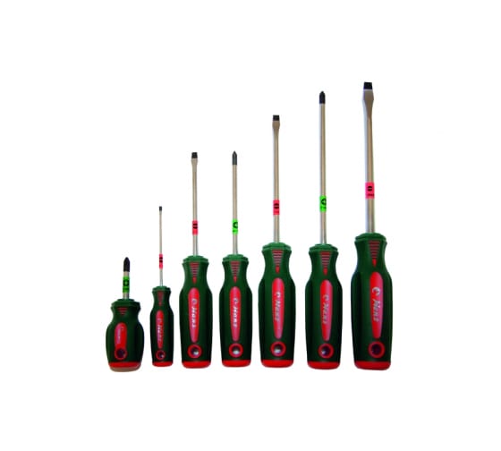 Отвертки оснащены намагниченными наконечниками, которые позволяют работать с винтами в пазах и подобными труднодоступными местами.