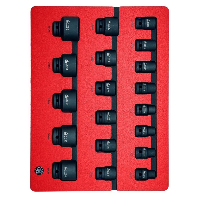 Набор ударных торцевых головок 1/2", шестигранные, 10-36 мм, ложемент, 19 предметов мастак 5-054019