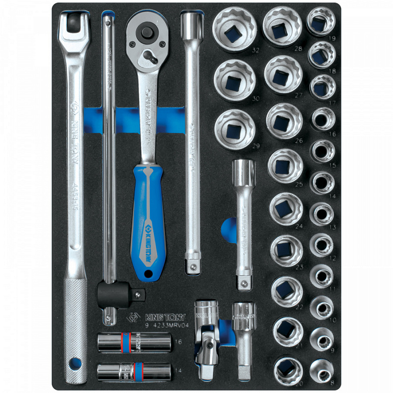 KING TONY Набор торцевых головок 1/2, двенадц-е, ложемент, 33 пр.9-4233MRV04