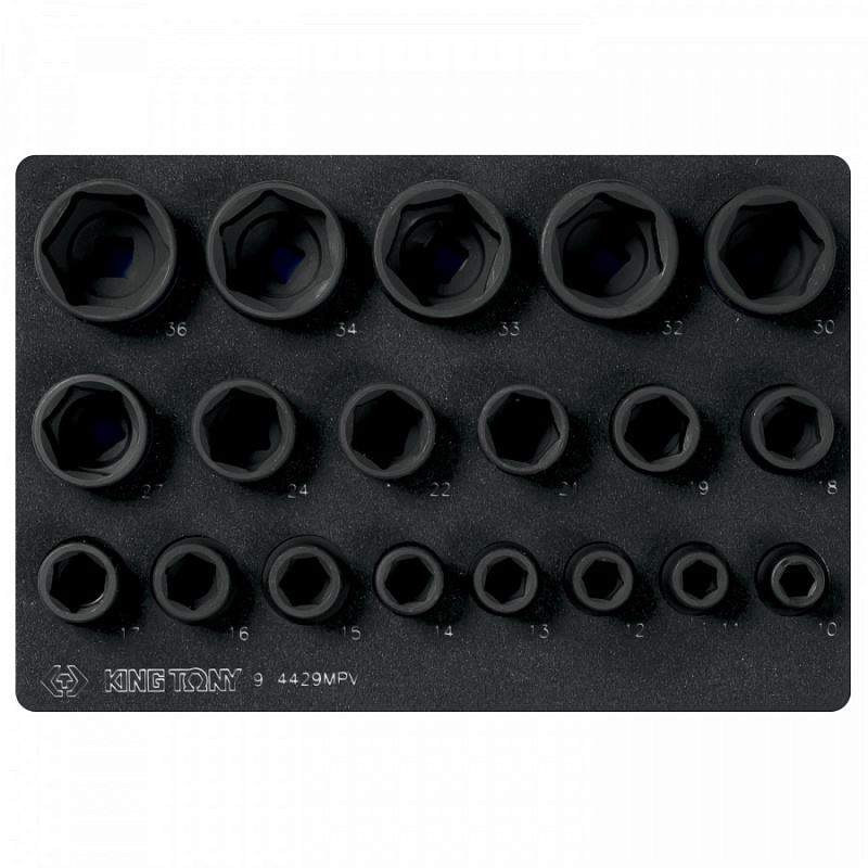 Набор ударных торцевых головок 1/2, шестигранные, 10-36 мм, ложемент, 19 пр. KING TONY 9-4429MPV