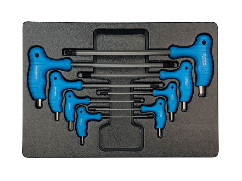 Набор шестигранников (HEX) KING TONY состоит из 8-ми предметов. Изготовлены в L-образной форме. Эргономичная форма рукояток, изготовленных из пластика, удобна при удержании инструмента в процессе работы. В процессе производства рабочие поверхности шестигранников KING TONY подвергаются специальной термической обработке, что придаёт им особую прочность и стойкость к износу или сколам. Материал ложемента – ПВХ (поливинилхлорид). Изготовлен специально для комплектации инструментальной тележки.