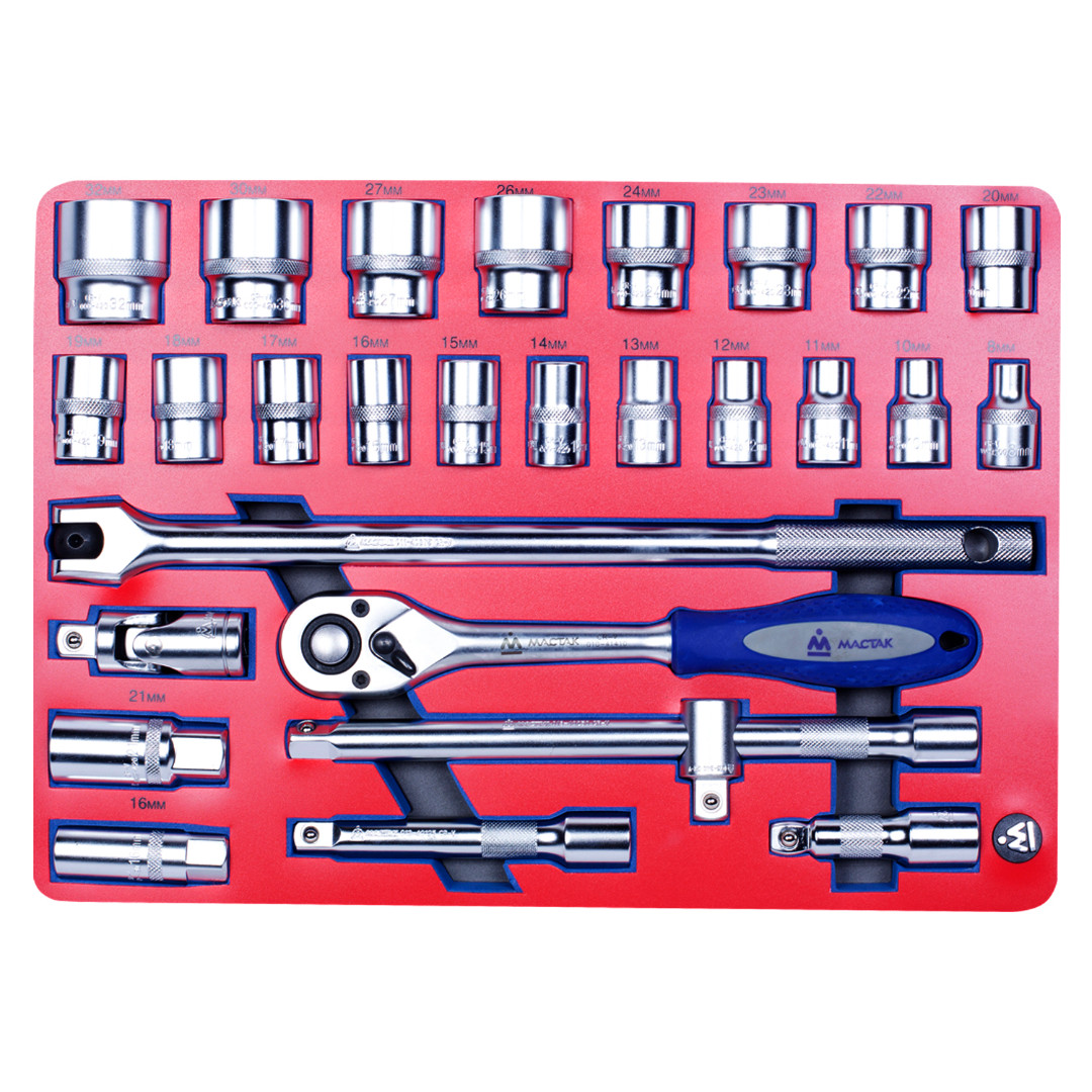 Набор торцевых головок 1/2 с принадлежностями, двенадцатигранные, ложемент, 28 предметов МАСТАК 5-004228