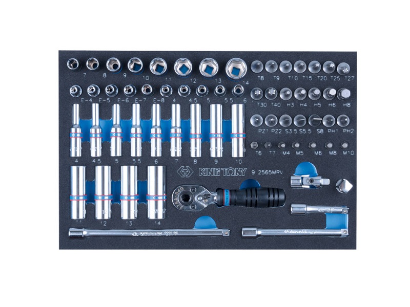 Набор торцевых головок 1/4" с принадлежностями, ложемент, 65 предметов KING TONY 9-2565MRV характеристики