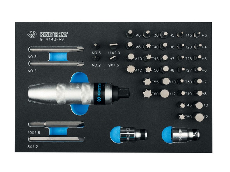 Набор торцевых насадок, бит и ударная отвертка, ложемент, 43 предмета KING TONY 9-4143FRV