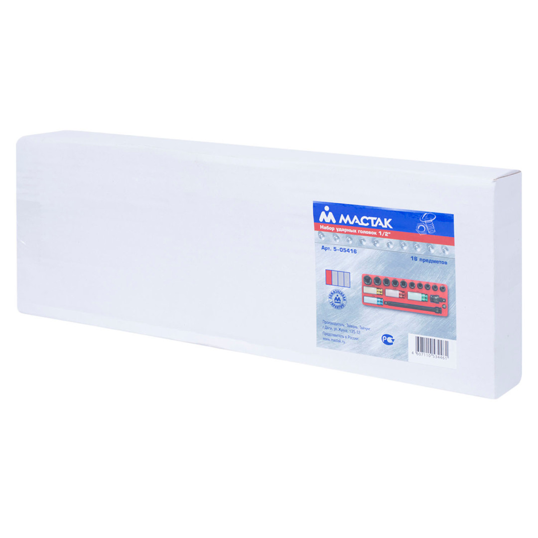 Набор ударных головок 1/2 с принадлежностями, ложемент, 16 предметов МАСТАК 5-05416 характеристики