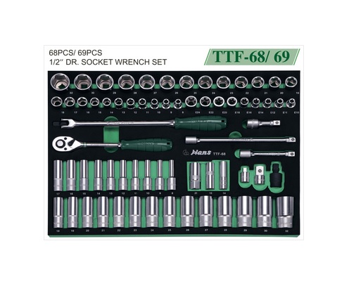 Ложемент торцевых головок и аксессуаров на 1/2", 68 предметов Hans TTF-68