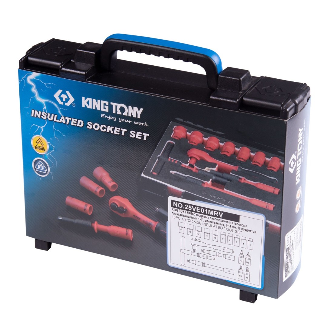 Набор торцевых диэлектрических головок 1/4", шестигр.18 пр. KING TONY 25VE01MRV характеристики