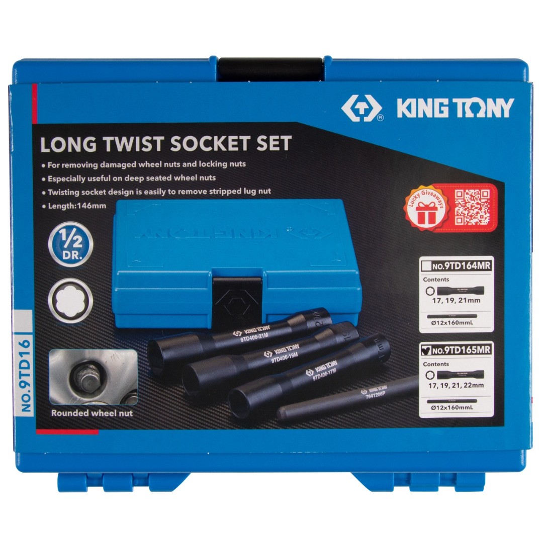 Набор торцевых головок для поврежденных гаек и болтов, 17, 19, 21, 22 мм, 5 предметов king tony 9td165mr