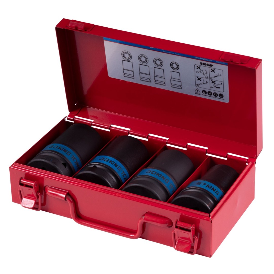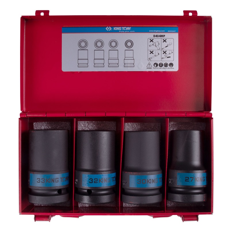 Набор ударных глубоких торцевых головок 1", шестигранные, 27-33 мм, 4 предмета king tony 8404mp