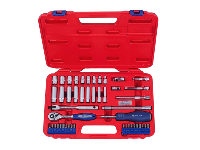 Инструменты марки МАСТАК изготовлены из инструментальной легированной хром-ванадиевой стали специального сплава. Технология изготовления ключей и головок включает в себя метод горячей ковки с последующей термообработкой, придающим инструментам особую прочность и высокую надёжность, что даёт возможность профессионального использования набора в условиях автосервисной мастерской, станции технического обслуживания, а также на производстве.
