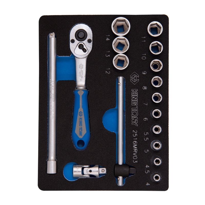 Набор торцевых головок с принадлежностями 1/4, шес-е, 4-14 мм, 17 пр. KING TONY 2516MRV03 характеристики